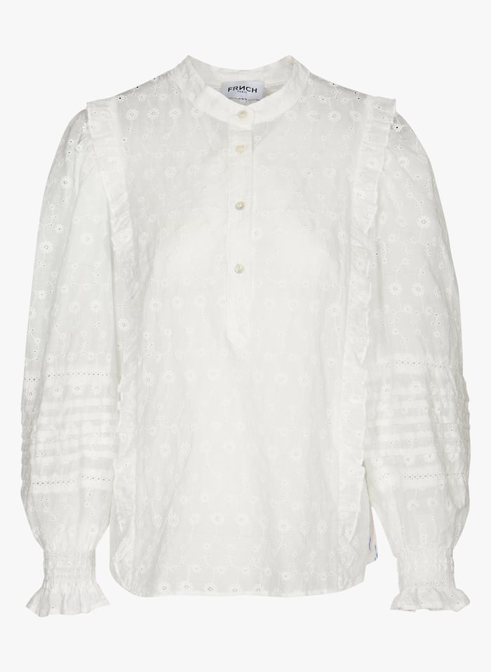Cotton Broderie Anglaise Top With Round Neck Blanc Frnch Women Place Des Tendances